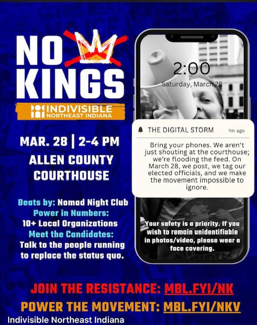 Join us! March 28th from 2-4 pm. We will have a table at this event. We would love to see you! Let’s make this No Kings Event the biggest yet!