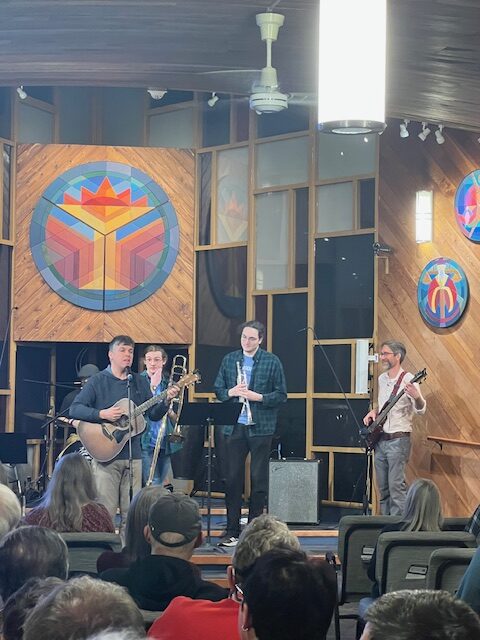 Hope Sings was a family friendly concert and sing along with music for hope and resolve held at the Unitarian Universalist meetinghouse.